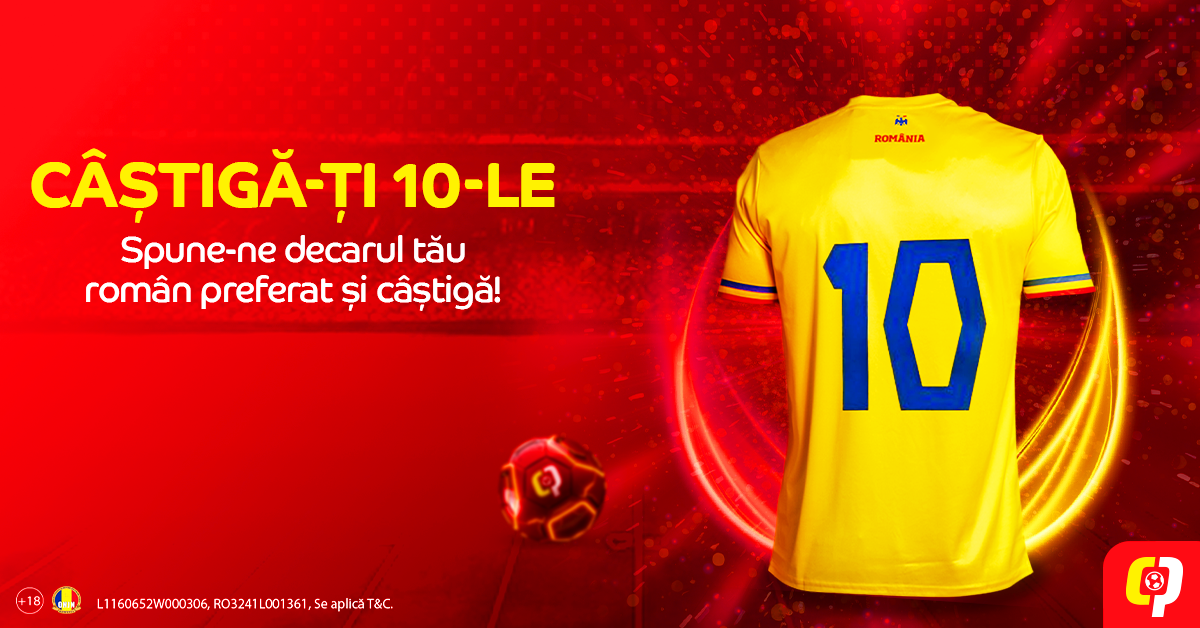 Hai pe pagina oficială de Facebook Casa Pariurilor, răspunde la postarea în care te întrebăm cine este decarul tău român preferat și poți câștiga un tricou cu numărul 10!