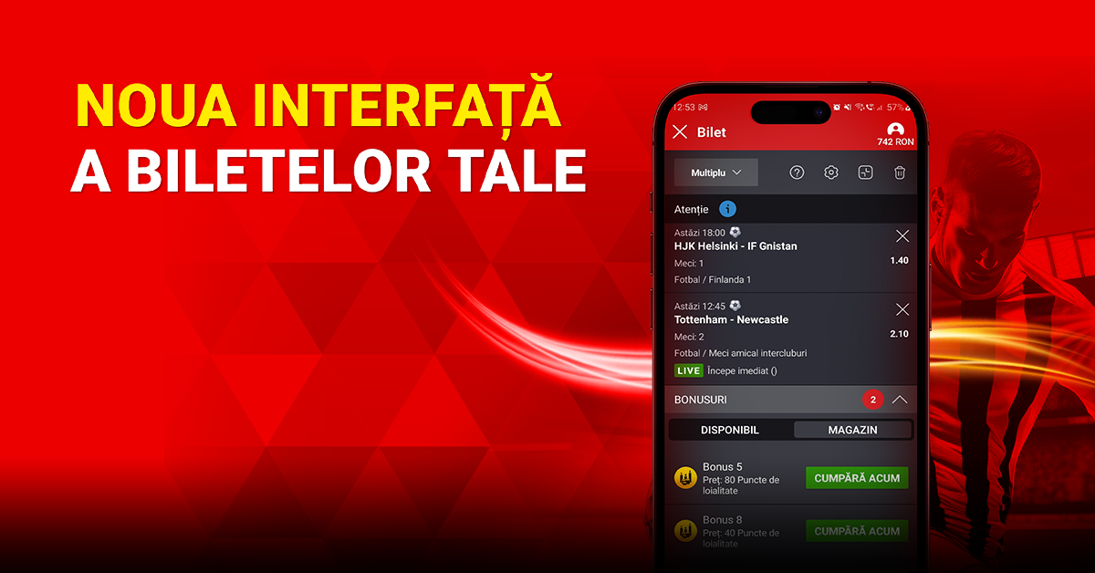 Casa Pariurilor are o nouă interfață pentru biletele tale de pariuri. Cu un design modern și intuitiv ai o navigare ușoară și acces rapid la toate bonusurile și avantajele disponibile pe biletul tău de joc.